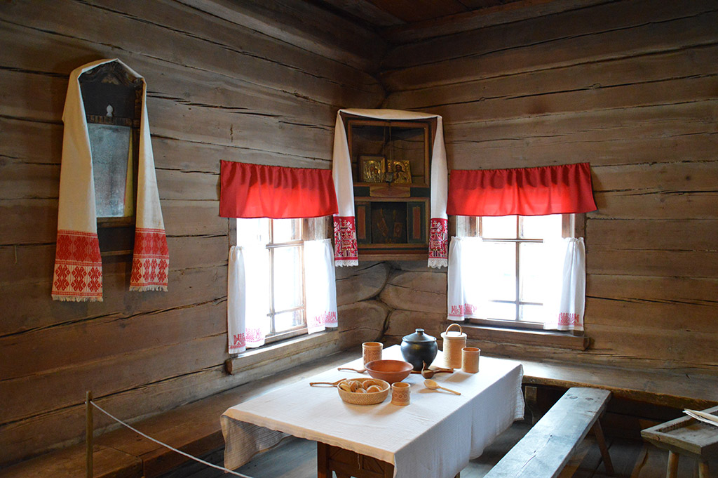 В отдельной горнице дома была оборудована келья, где висели иконы, медные распятия, складни, церковные книги старого письма, старообрядческие четки-лестовки. Здесь жили старики, не принадлежавшие к членам семьи. Значительная часть крестьян Каргопольского уезда исповедовала старообрядчество и предоставляла приют для странников-бегунов, укрывавшихся от царской и церковной власти3.