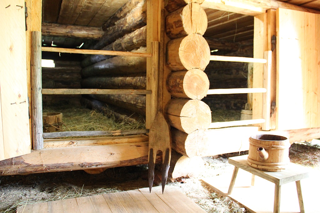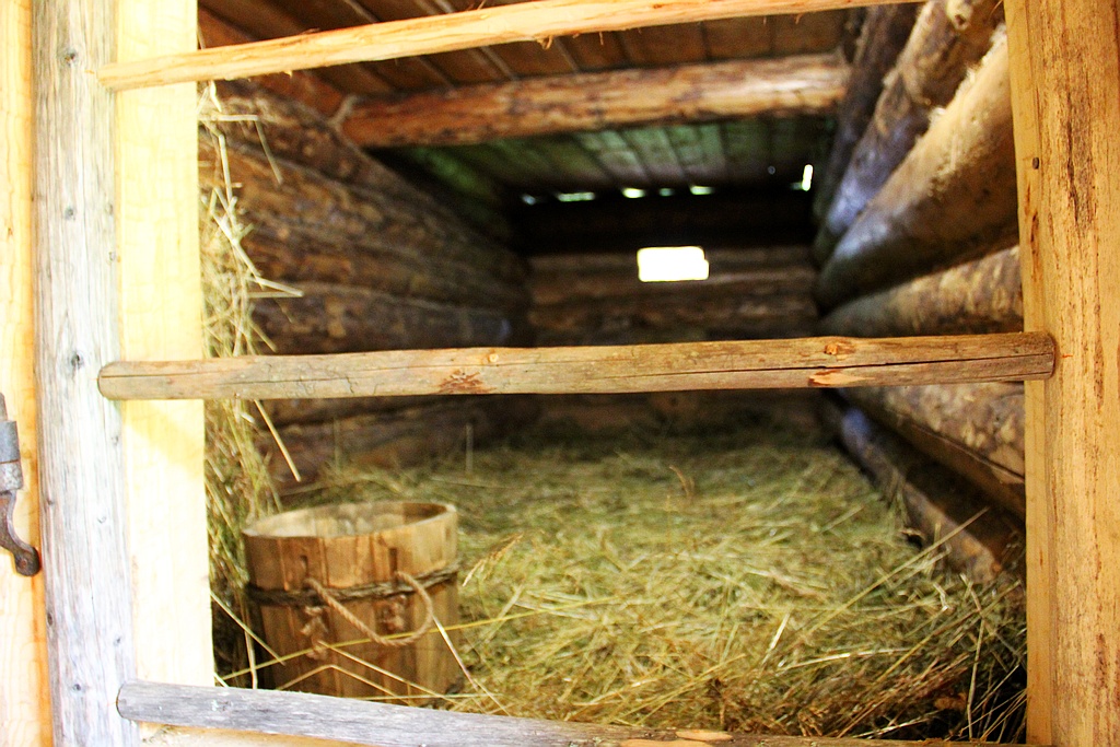 - Хлев был довольно темным помещением. Слабый свет проникал только через узкие окошки — продухи, вырубленные в стене сруба, которые в холодное время затыкали соломой.
