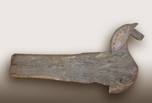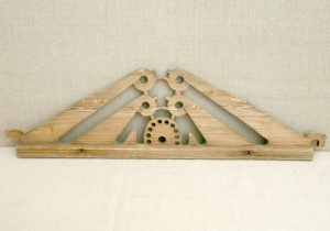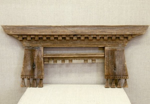 «полотенца», причелины, фигурно вырезанные консоли, завершения крюков — «куриц» и брёвен — охлупней. Особое внимание привлекают вырезанное в форме головы коня завершение бревна — охлупня из села Сура Пинежского района (XIX век), доска — «полотенце» из деревни Хачела Онежского района (1886 год) в форме солярного символа, труба — дымник с резными стенками и двухскатной кровлей из деревни Веркола Пинежского района (XIX век).