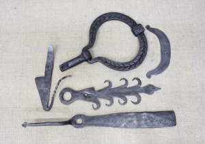 В доме Ермолиной (Двинской сектор музея) работает выставка «Кузнечное ремесло на Русском Севере», на которой представлены предметы из фондов музея «Малые Корелы». В большинстве населенных пунктов Архангельской губернии наличие кузнеца было жизненной необходимостью: крестьянин не мог обойтись без сошника для вспашки поля, топора, багра, гвоздей. Для промысловых занятий нужны были тесла и багры, скобы для лодей и кочей, крючки для рыбной ловли. Для каменных и деревянных храмов выковывались скобы, связи, крючья, гвозди, решетки и двери. |