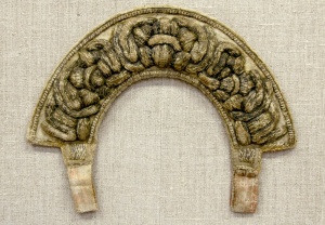 На выставке представлены и головные уборы, бытовавшие в Мезенском уезде Архангельской губернии. Среди них повязки и повойники.