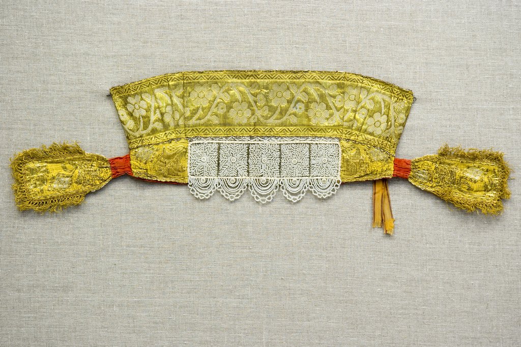 Отдельным комплексом на выставке были представлены украшения и головные уборы девушек и замужних женщин: повязки, перевязки, кокошники, сороки, сборники, повойники. Одним из ценных и по праву уникальных экспонатов экспозиции является почелок (головодец) — девичий головной убор, который датируется XVIII в.