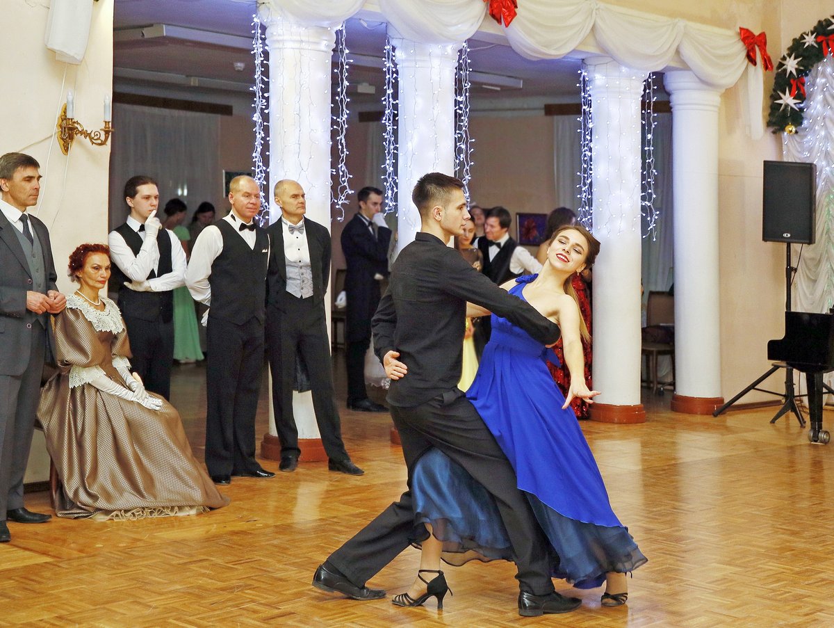 Главным помещением Дома Коммерческого собрания, который мог вместить в себя 1500 человек одновременно, был большой двухсветный зал на 150 «танцевальных пар» с антресолью для оркестра. По сторонам зала располагались диванные комнаты — мужская и женская гостиные, а позади — банкетный зал на 200 персон. В банкетном зале городская элита чаще всего обсуждала коммерческие дела и официальные вопросы государственного значения. Дела менее официальные нередко обсуждались в гостиной.