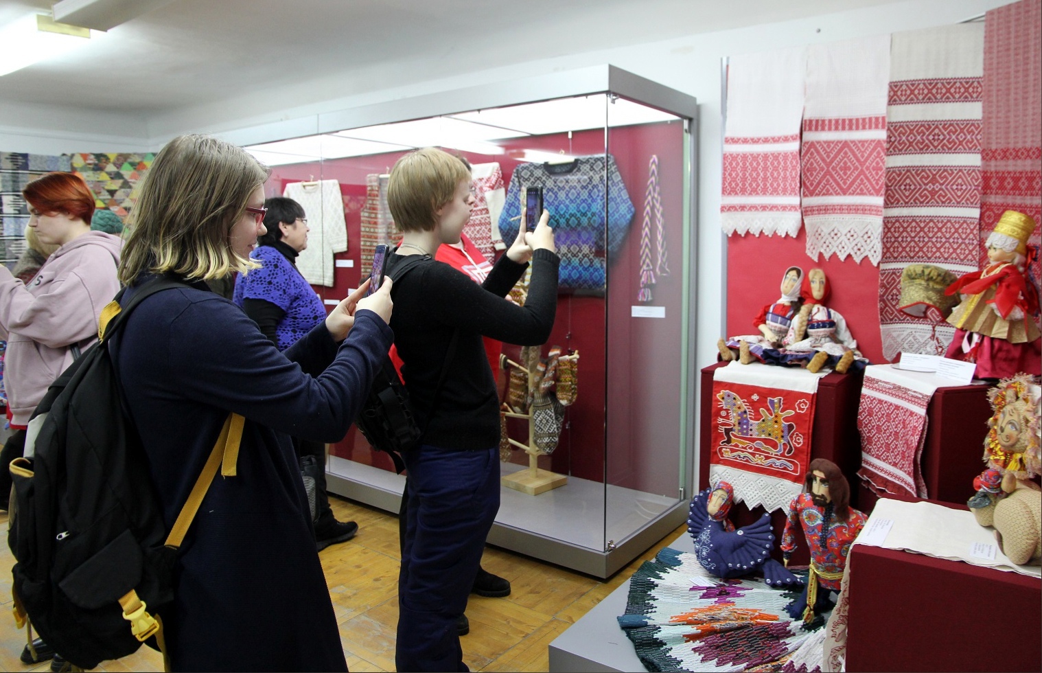 Так, посетители выставочного зала Дома Коммерческого собрания увидят лоскутные одеяла и тканые половики, изделия, выполненные в технике орнаментального вязания, реплики традиционных праздничных женских головных уборов Русского Севера, народную и авторскую куклу, традиционный и стилизованный костюм. Выставка «Живая традиция» будет работать по 31 марта. Вход свободный.