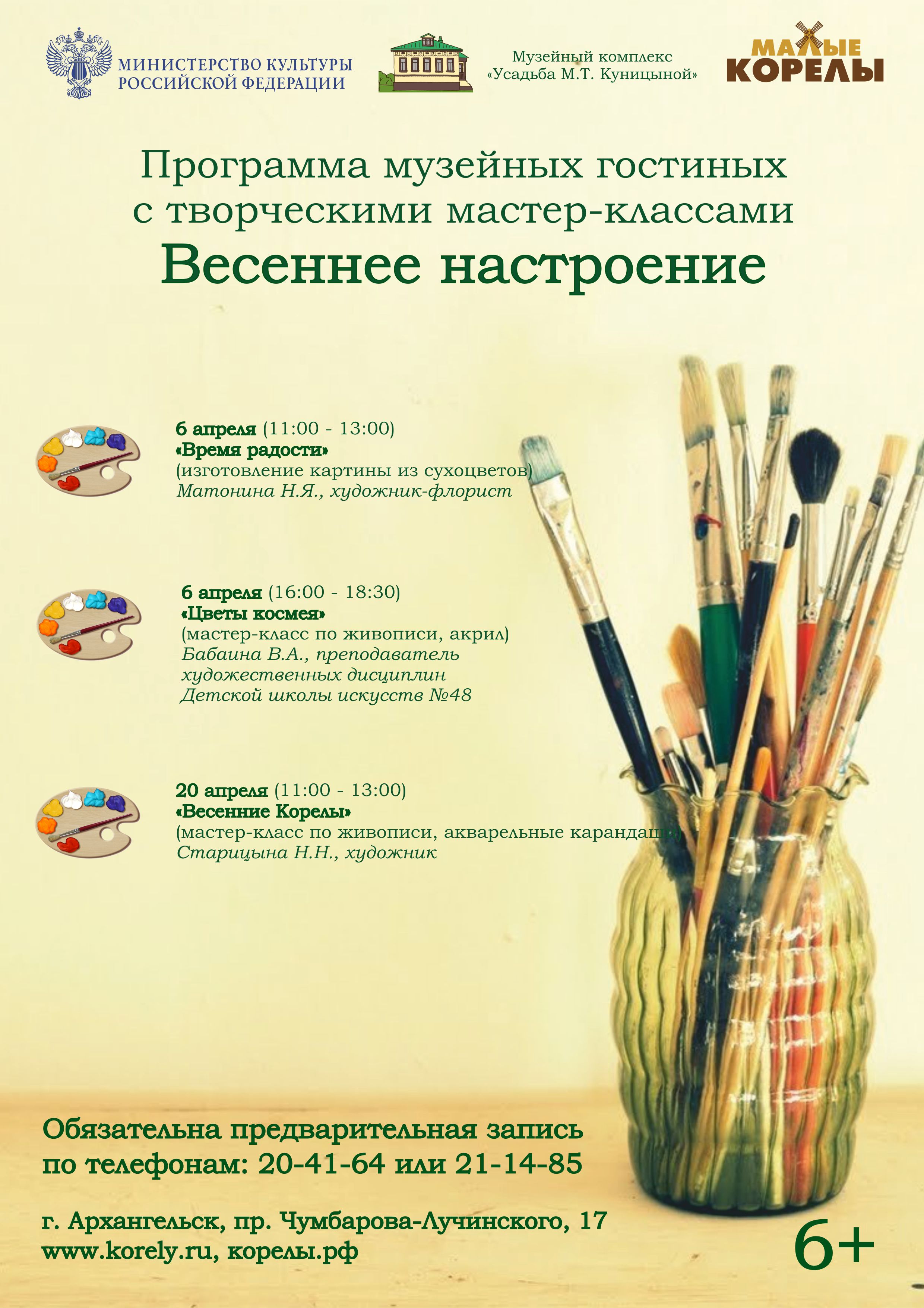 Для участия в мастер-классах необходима предварительная запись по телефону: