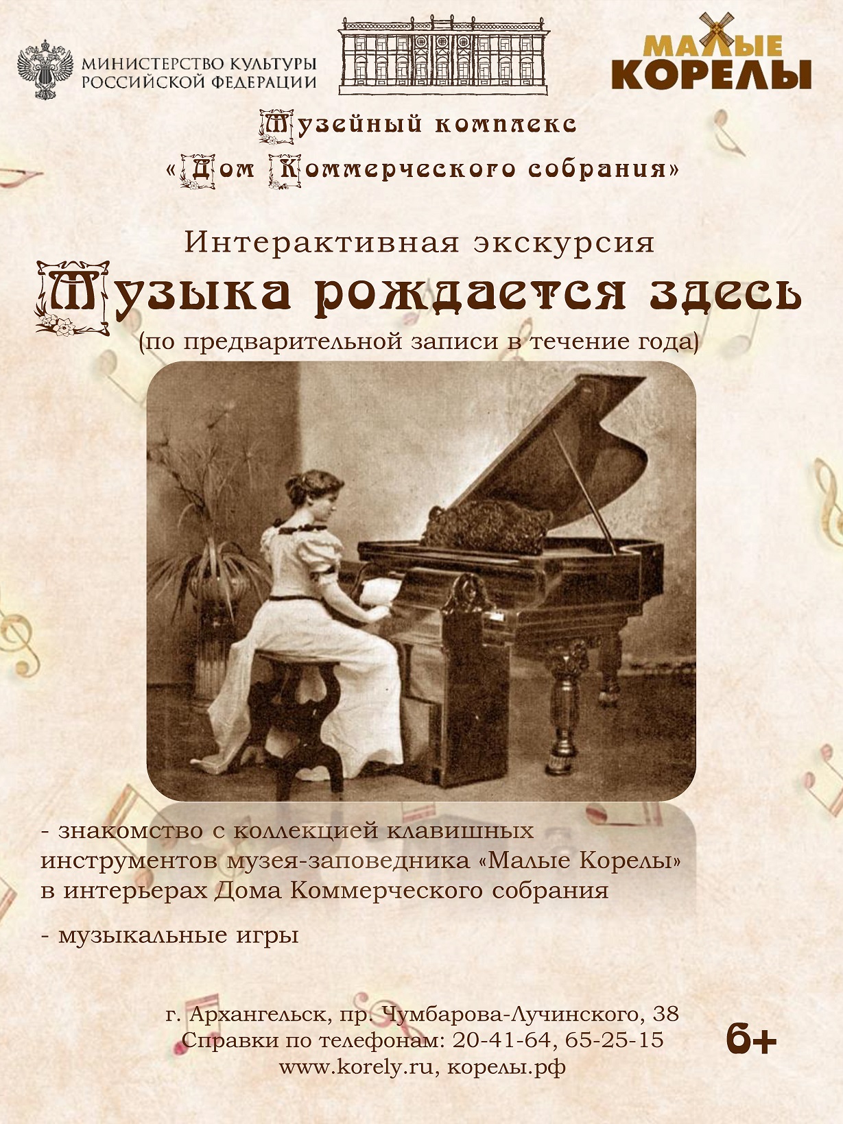 Через знакомство с музыкальной культурой старого Архангельска на примере деятельности Коммерческого собрания как культурно-делового центра состоится погружение экскурсантов в городскую среду и жизнь светского общества на рубеже XIX — начала XX веков. Именно в это время в Архангельске музыка и музицирование приобрели особую популярность: многие горожане не только активно посещали музыкальные мероприятия, но и брали уроки музыки и приобретали музыкальные инструменты.