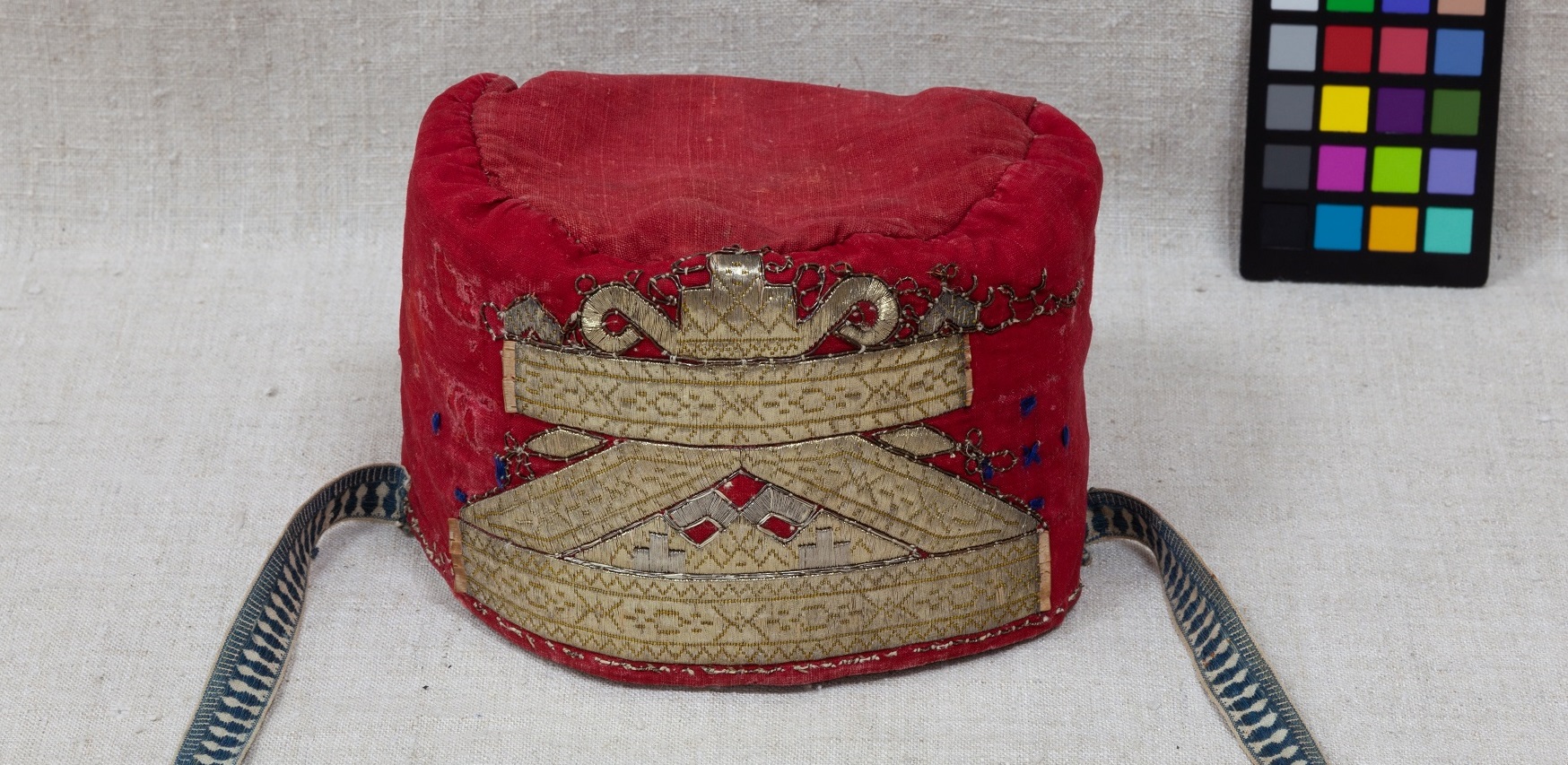 Отреставрирован в течение 2024 года и традиционный женский головной убор — кокошник, украшенный вышивкой золотными нитями и золотным шнуром. Предмет датируется первой четвертью ХХ века. Были восполнены разрывы и утраты ткани, укреплены следы бытовой реставрации.