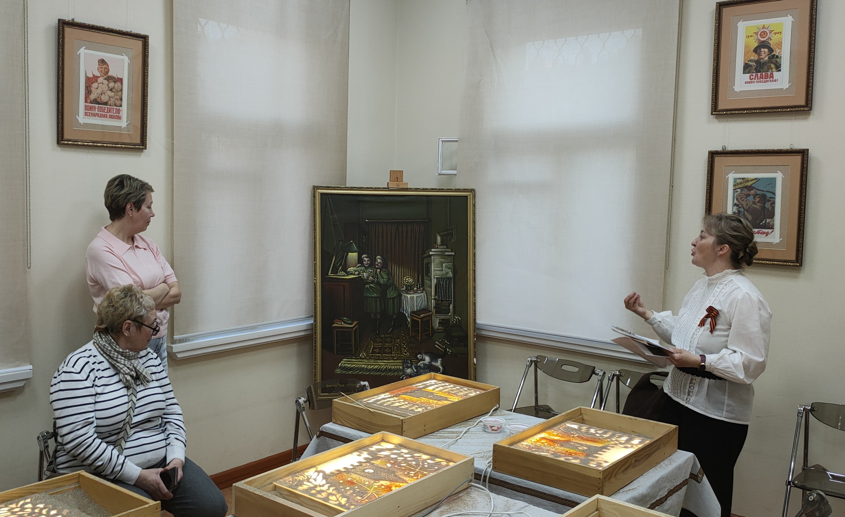 Состоялись экскурсии по выставке «Вкус хвои и хлеба». На мастер-классах взрослые и дети смогли нарисовать песком салют Победы, а также сделать праздничную открытку в технике коллаж и сшить подарочный мешочек. Эти поделки в дальнейшем будут отправлены тем, кто сегодня защищает рубежи нашей страны, через организацию «ZaМир», объединяющую волонтёров Архангельской области.