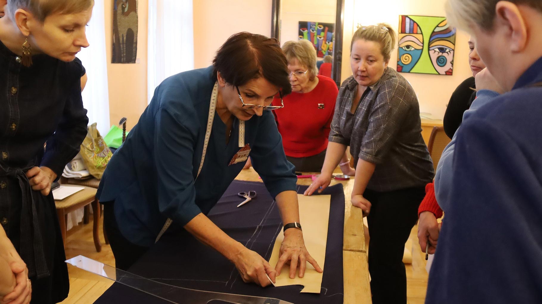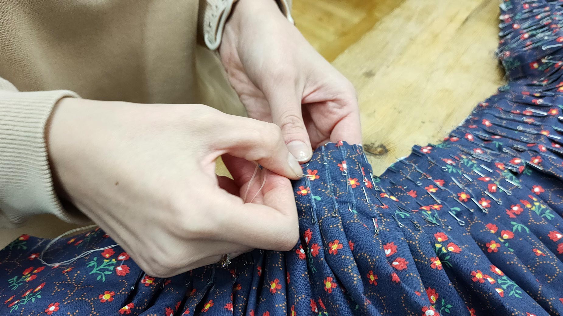 «Для каргопольского костюма характерно, в частности, пышное оформление многоцветной вышивкой, — отметила Юлия Волова. — А также декоративная отделка лоскутным шитьём женских рубах и сарафанов, и на этом мы сделаем акцент: наши участницы пошьют сарафан-пестрядинник с лоскутной отделкой».