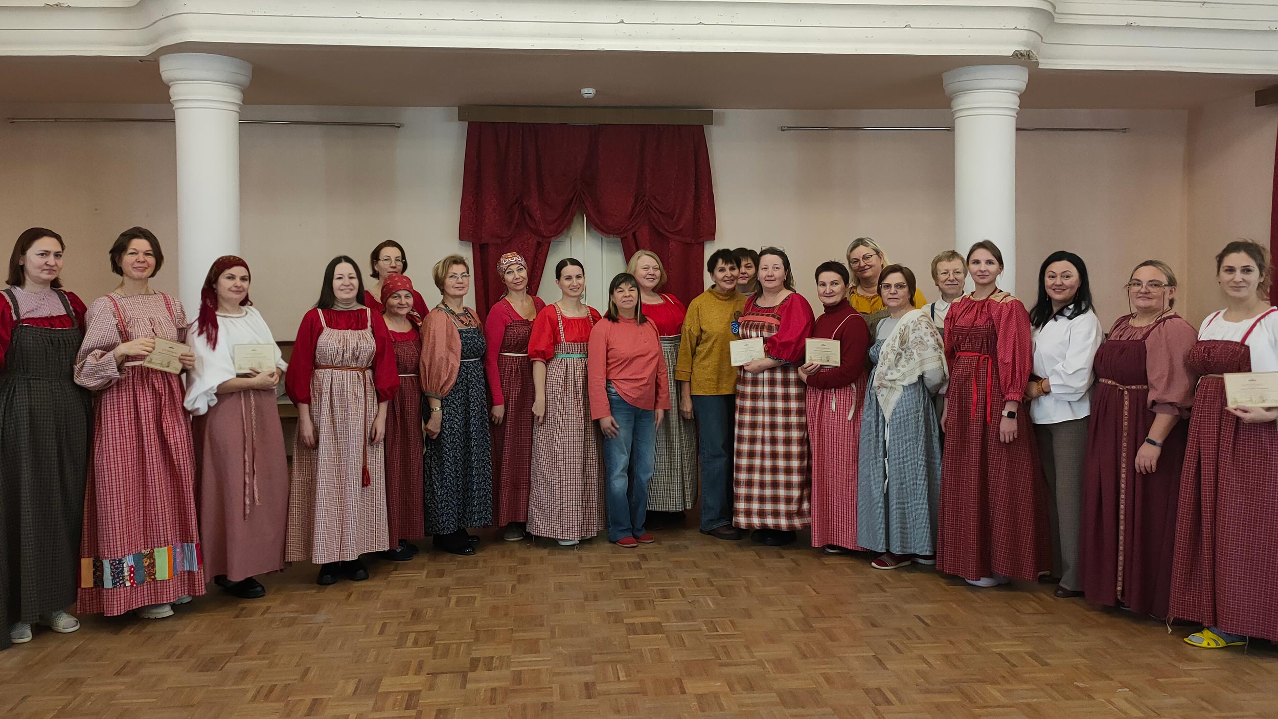 В городском музейном комплексе «Дом Коммерческого собрания» в субботу завершилась программа «Осенние рукомёсла», которую музей-заповедник «Малые Корелы» проводит ежегодно уже более десяти лет. В этот раз темой трёхдневного практикума стал традиционный женский костюм Каргопольского уезда Олонецкой губернии конца XIX — начала XX века.