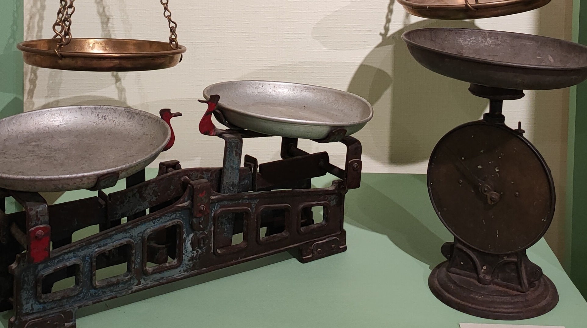 Редким предметом в собрании музея-заповедника, который также представлен на выставке, являются одночашные пружинные весы «Salter» (Солтер). Их особенностью было движение указателя по круговой шкале — циферблату. Подобные приборы были широко распространены в России в середине XIX века.