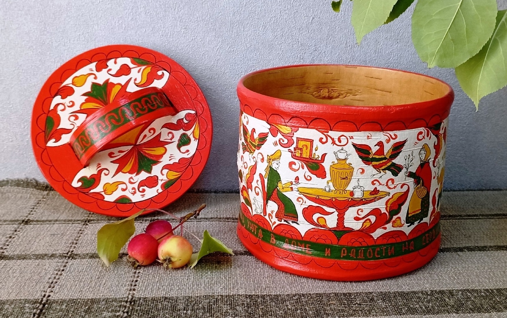 Посетители выставочного зала Дома Коммерческого собрания увидят изделия из дерева и бересты — резные и с росписью: туеса и короба, сундучки и шкатулки, щепных птиц, дамские украшения и детские игрушки. Всего — около ста предметов.